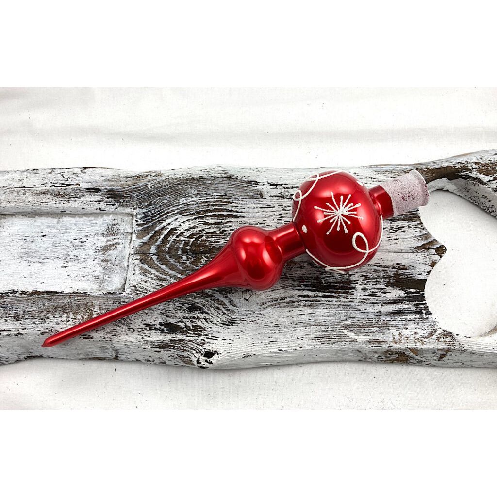 Vianočný špic 661/199/7/1ks – červený so špirálkami a vločkami