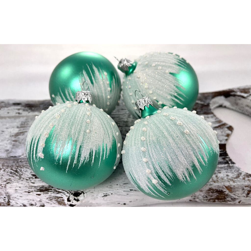 Vianočné gule 22/4500/8/4ks – zelená metalíza + biely dekor
