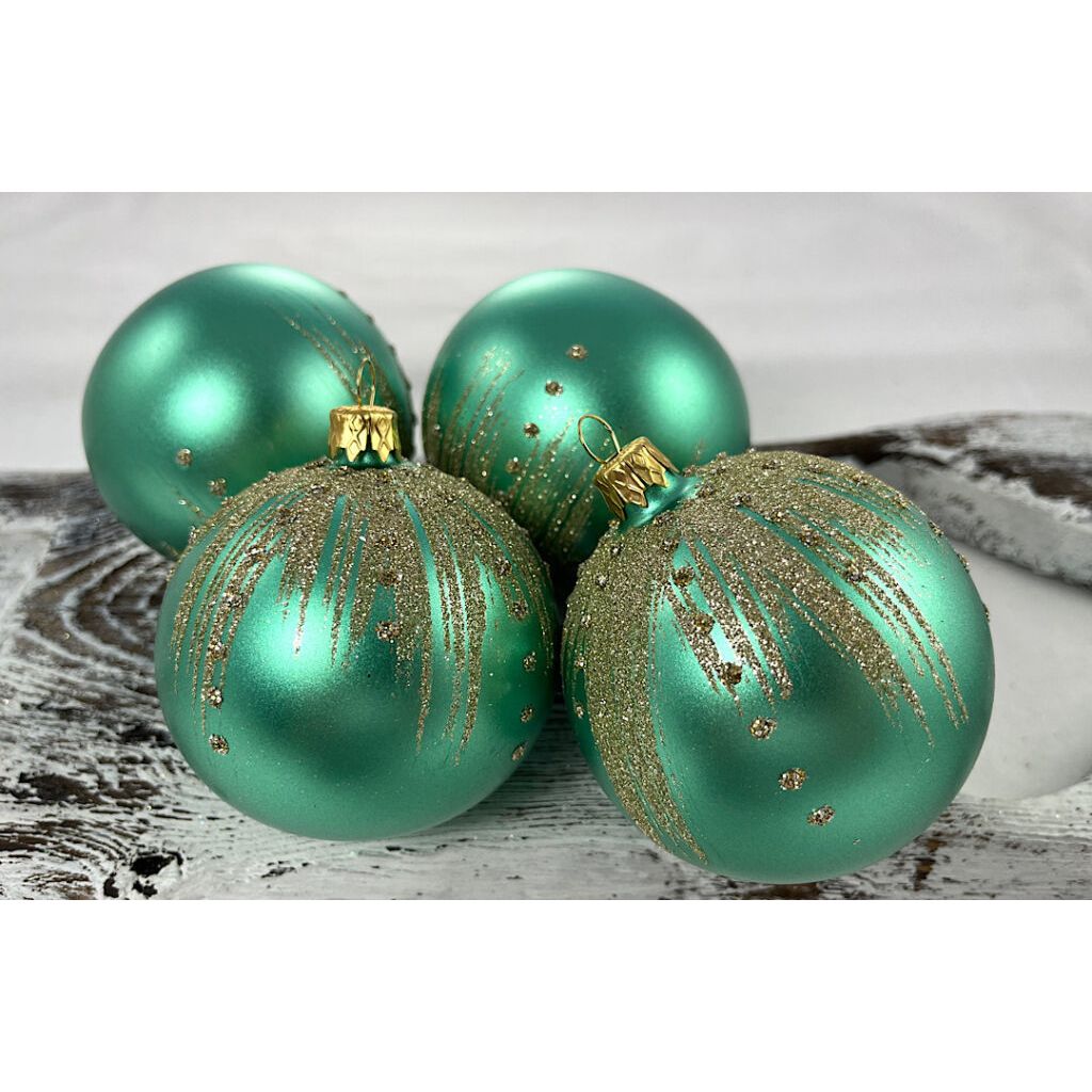 Vianočné gule 22/4501/8/4ks – zelená metalíza + zlatý dekor