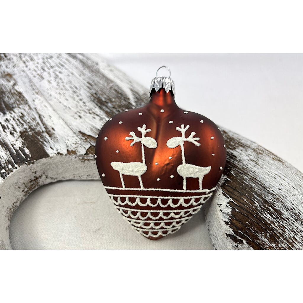 Sklenené srdiečko v hnedej matnej farbe s dvoma sobmi.