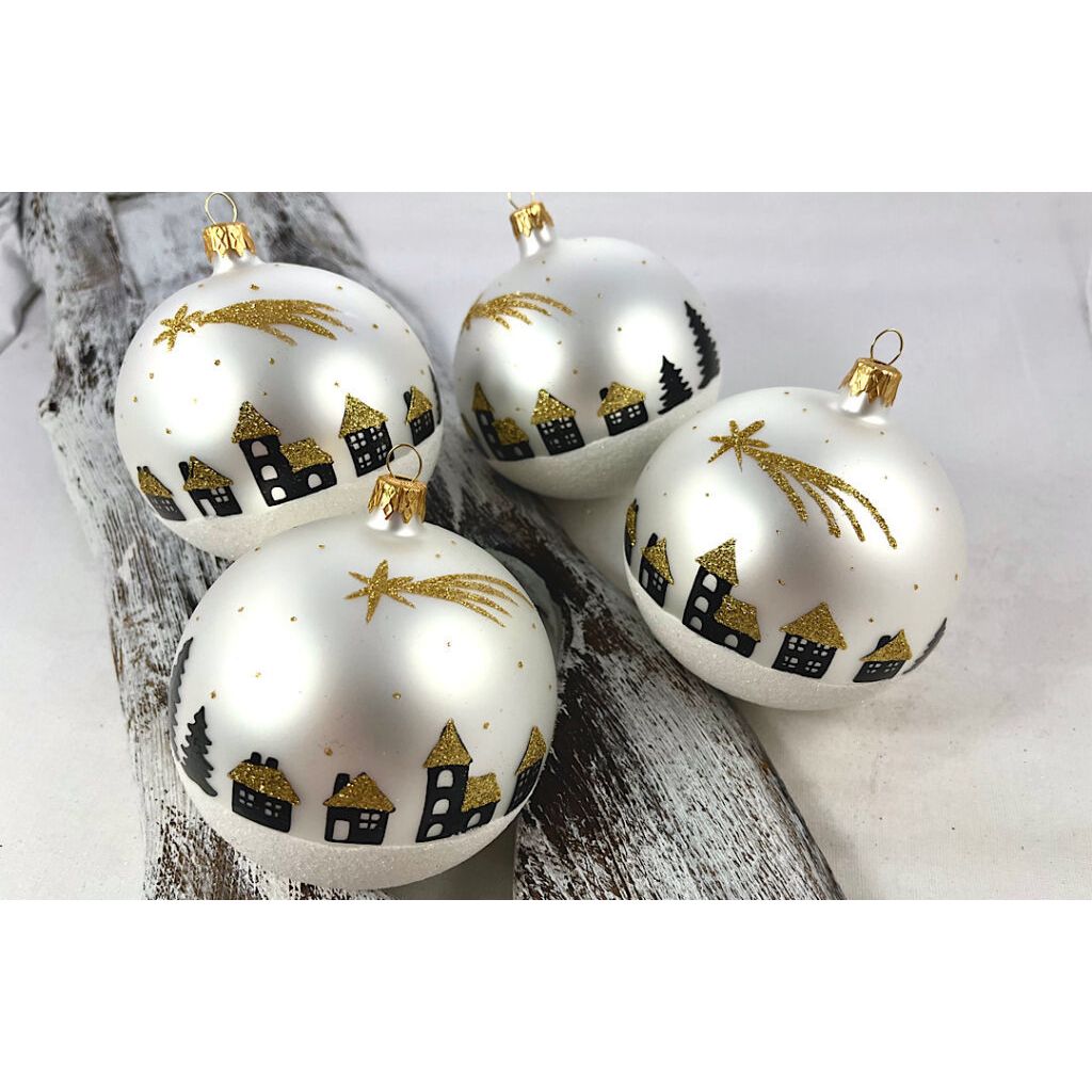 Vianočné gule 24/8736/10/4ks – chalúpky s kométou