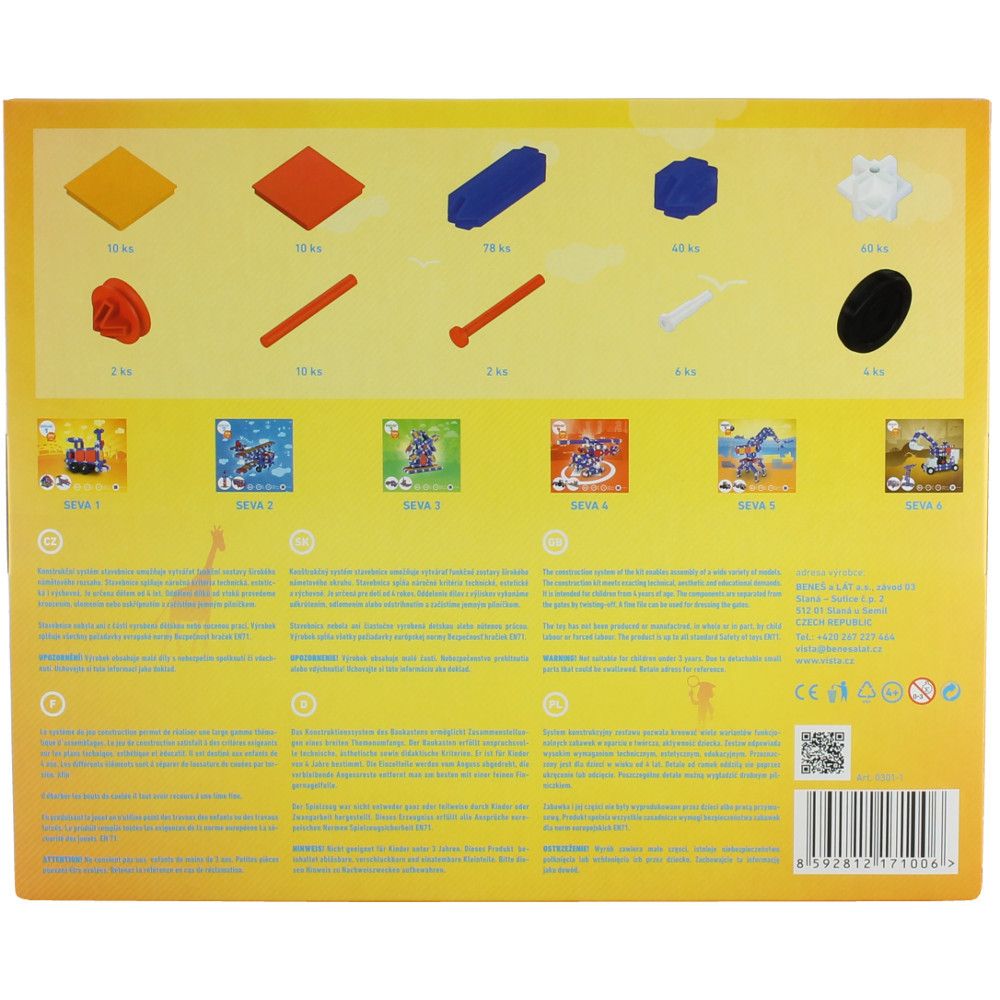 Stavebnica SEVA KLASIK - Jednotka obsahuje 222 dielikov a je ideálna pre prvé zoznámenie. Nájdete v nej základné dieliky a tí, ktorí SEVU nepoznajú sa naučia dieliky spájať. SEVA KLASIK - Jednotka je určená pre deti od 4 rokov. Vyhovuje európskej norme EN71 o bezpečnosti hračiek a jej kvalita je pravidelne kontrolovaná. Všetky stavebnice SEVA sú navzájom kompatibilné a ich možnosti sa dajú stále rozširovať.