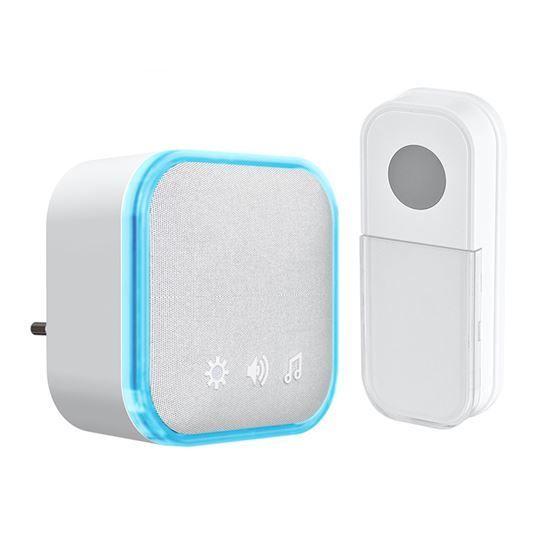 Zvonček ponúka výber z 36 melódií a 4 úrovní hlasitosti. Ovládacie tlačidlá sú umiestnené priamo na prednej strane pod látkovým dekorom – to výrazne uľahčuje prístup a zjednodušuje nastavenie funkcií bez nutnosti otáčať alebo odpájať zariadenie. Pri zazvonení sa rozsvieti veľký svetlo modrý LED rámček, ktorý zaisťuje dobre viditeľnú svetelnú signalizáciu. Ideálne aj do hlučnejších priestorov alebo pre osoby so zhoršeným sluchom.