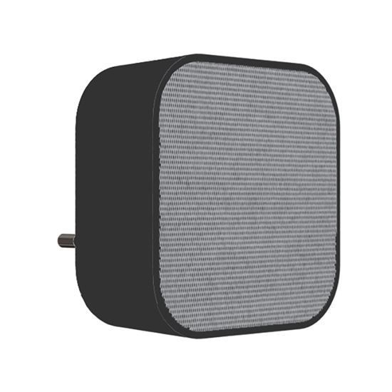 Matné čierne prevedenie s jemnou štruktúrou na čelnej strane imituje vzhľad textílie, čo dodáva zvončeku tradičný a domácky charakter. Dizajn je jednoduchý, funkčný a vhodný pre užívateľov, ktorí hľadajú klasické a nenápadné riešenie na každodenné použitie.