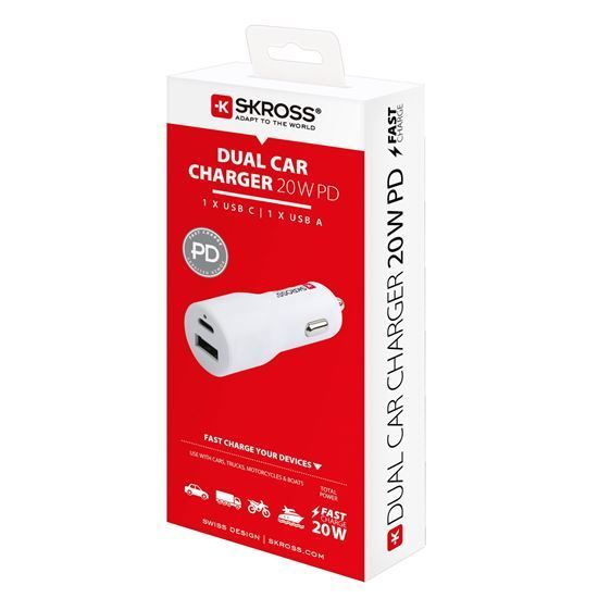 SKROSS A+C USB nabíjací autoadaptér Dual Car Charger 20W PD
