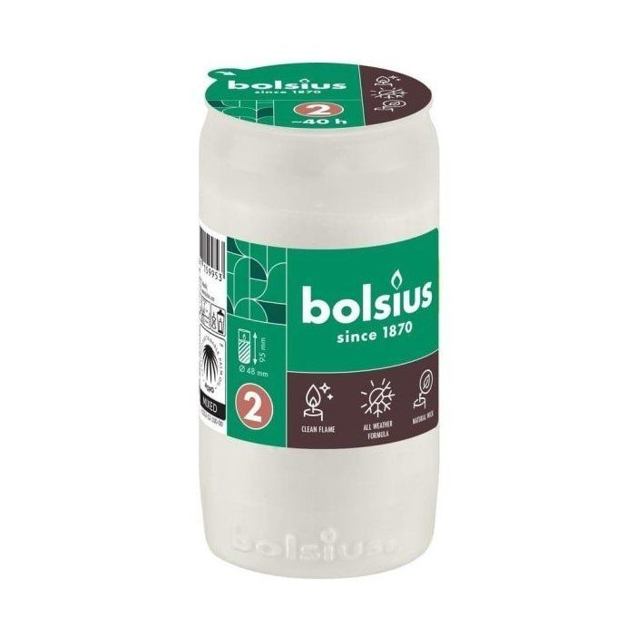 Olejová náplň Bolsius vyhorí až do konca, horí krásnym rovnomerným plameňom aj pri vysokej vlhkosti, veternom počasí alebo mraze. Nedymí, nefarbí a neničí lampáše. Doba horenia: 40 hodín.