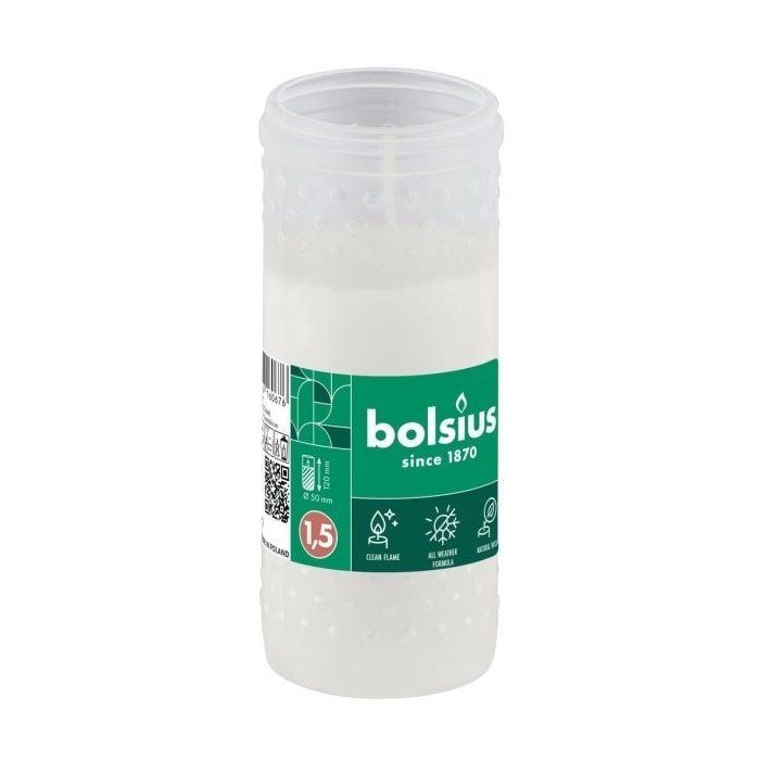 Klasická biela parafínová náplň Bolsius. Vyhorí až do konca, horí krásnym rovnomerným plameňom aj pri vysokej vlhkosti, veternom počasí alebo mraze. Nedymí, nefarbí a neničí lampáše. Nádobka na kartuše vyrobená z kvalitného svetlo prepúšťajúceho materiálu umožňuje jej stabilné umiestnenie v lampáši a zabraňuje vytekaniu vosku. Doba horenia – 34 hodín.