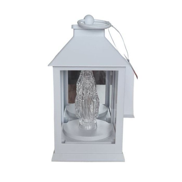 Tradičný dizajn s modernou technológiou – biela latarenka s bielym zobrazením Márie