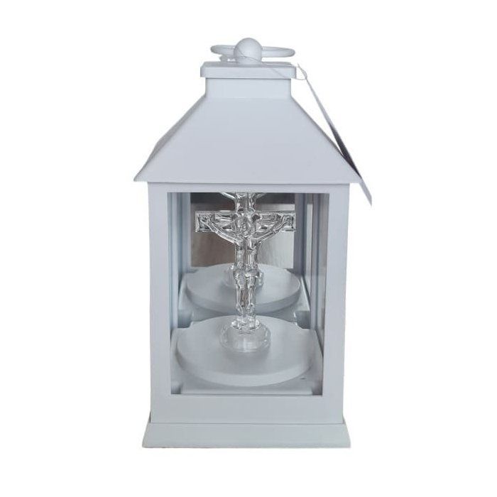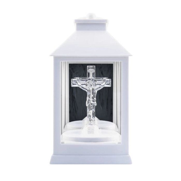 Lampáš LED Ceremony – biely lampáš s bielym krížom, 20 cm
