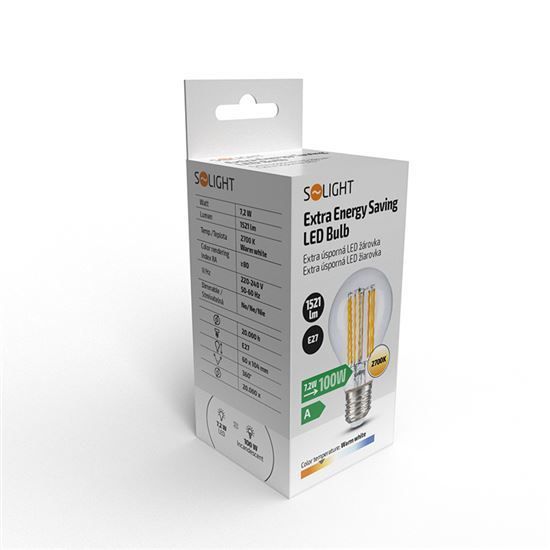 Solight extra úsporná LED žiarovka 7,2 W, 1521lm, 2700K, ekv. 100W