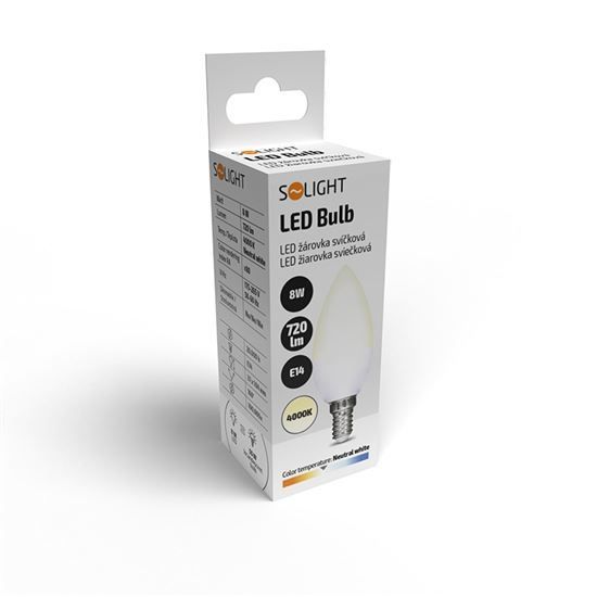 Solight LED žiarovka, sviečka, 8W, E14, 4000K, 720lm