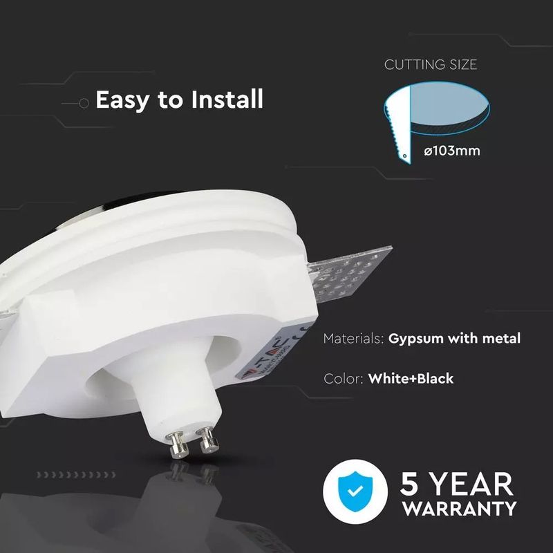 Bodové svietidlo do sadrokartónu zapustené okrúhle GU10 biela/čierna VT-866 (V-TAC)