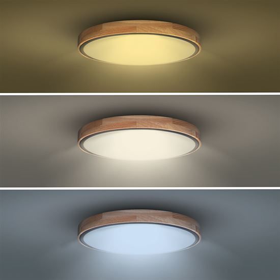 Luxusné stmievateľné svietidlo LED Iron Oak spája prirodzenú estetiku masívneho dubového dreva s modernou technológiou. Svietidlo je vybavené diaľkovým ovládaním, ktoré umožňuje výber teploty farieb v rozmedzí 3000K-6500K, plynulé stmievanie a prepínanie medzi režimami svetla. Maximálny príkon je 48 W a svetelný tok dosahuje až 3360 lm (pre 4000K).