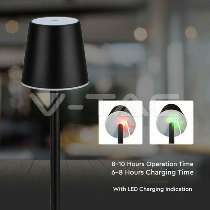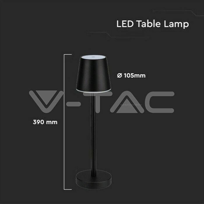Stolná LED lampa 3W, 4000K, 50lm, kov, čierna s akumulátorom 4000mAh 390mmVT-7703 (V-TAC)