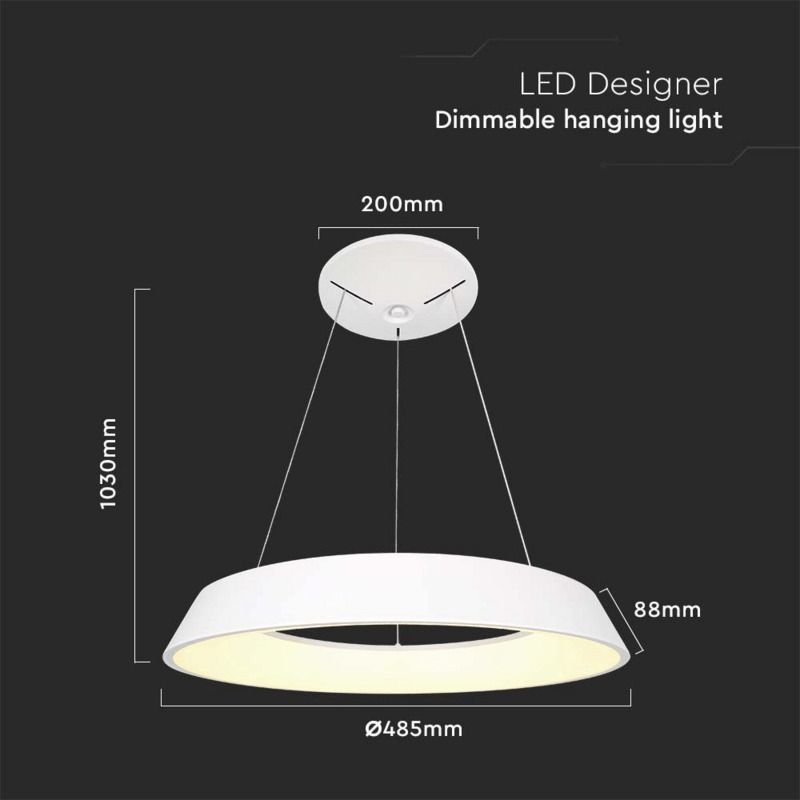 Dizajnové závesné LED svietidlo 48W stmievateľné TRIAK biele 3000K 5000lm VT-7755 (V-TA