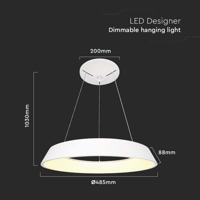 Dizajnové závesné LED svietidlo 48W stmievateľné TRIAK biele 4000K 5000lm VT-7755 (V-TA