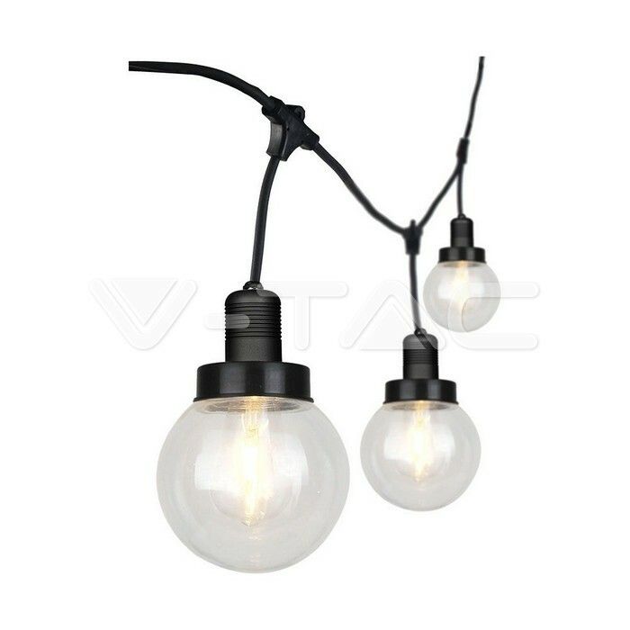 Záhradná svetelná reťaz 6xE27 3m, čierna VT-720S (V-TAC)