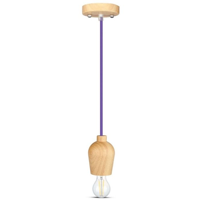 Závesné jednoduché svietidlo Wood E27 fialový kábel VT-7778 (V-TAC)