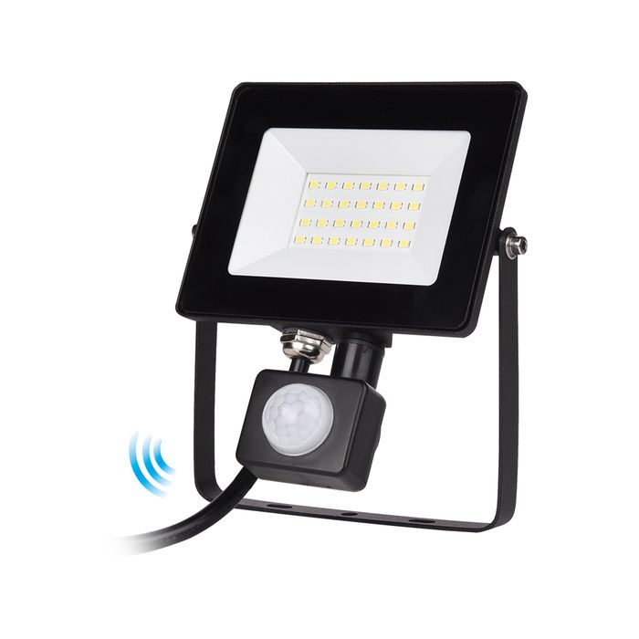 LED reflektor s PIR snímačom pohybu 30W 2400lm IP44 6000K, Alu+glass
