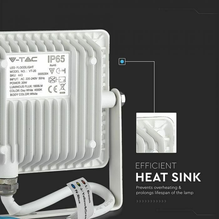 Reflektor LED PRO 20W, 6400K, 1600lm, biela VT-20 (V-TAC)