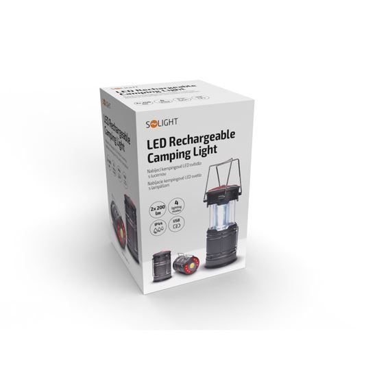 Solight LED nabíjacie kempingové svietidlo s lucernou, 200lm, sivá