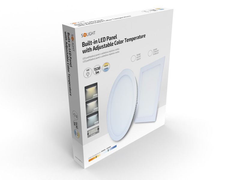 Solight LED mini panel CCT, podhľadový, 18W, 1530lm, 3000K, 4000K, 6000K, okrúhly