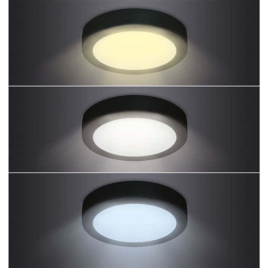 Solight LED mini panel CCT, prisazený, 18W, 1530lm, 3000K, 4000K, 6000K, okrúhly, čierna farba