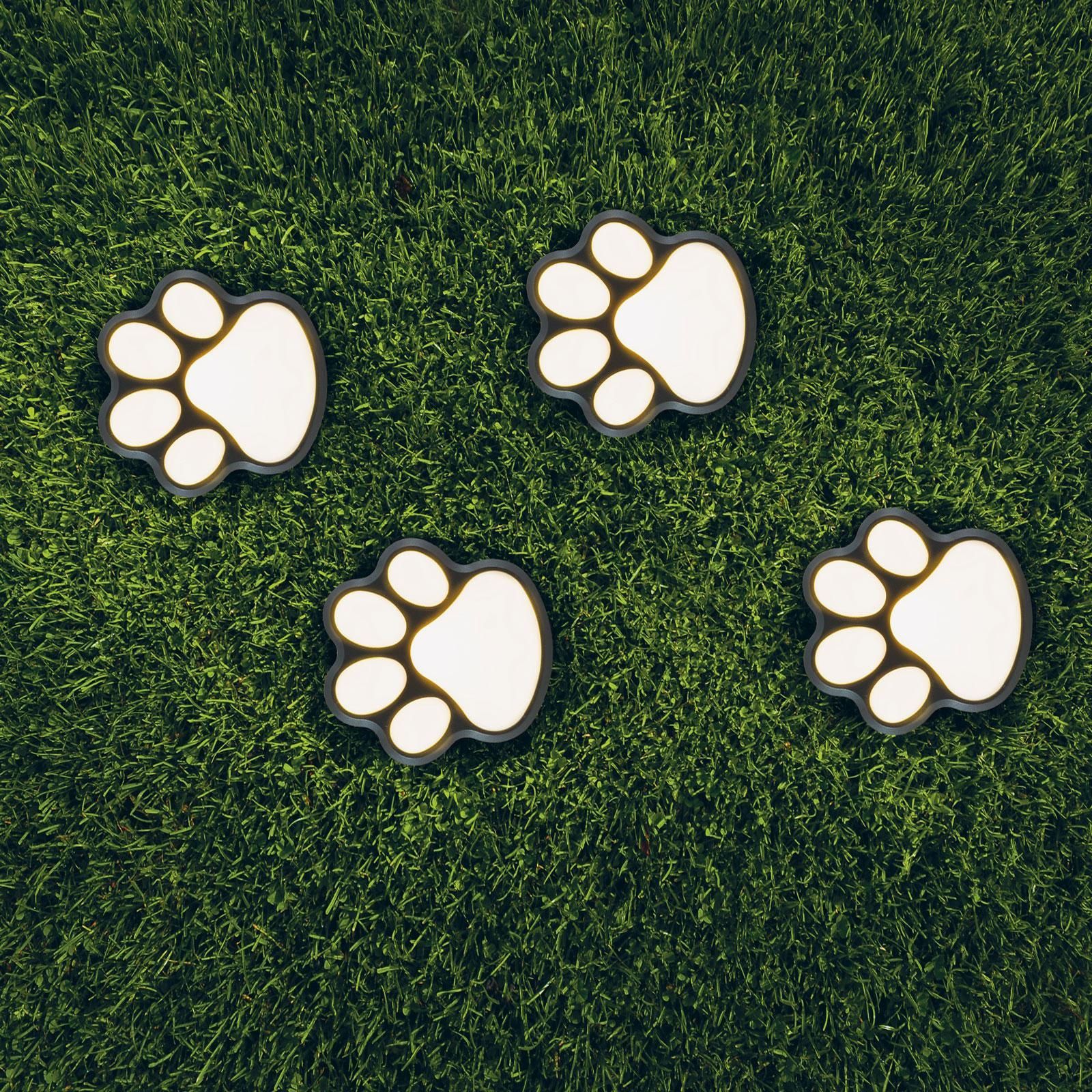 LED solárna lampa - odtlačky psích nôh, zapichovateľné - plast - čierna - 360 cm