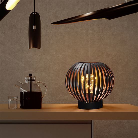 Solight kovový okrúhly lampáš so žiarovkou s micro LED, teplá biela, medená, 3xAA, 19cm