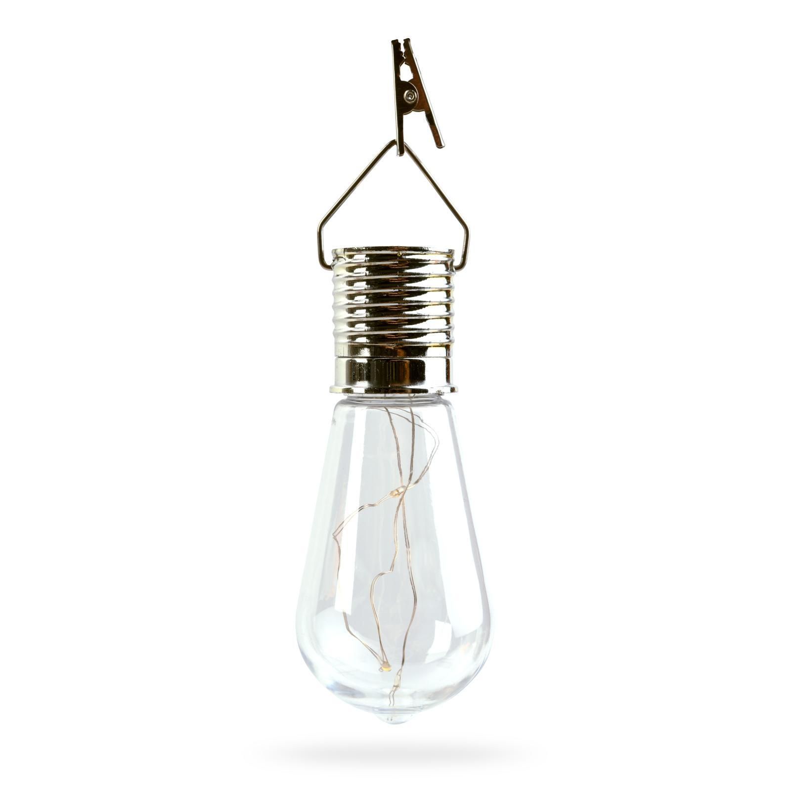 Zavesiteľná solárna lampa - žiarovka - 4 teplé biele LED - 4,7 x 11 cm