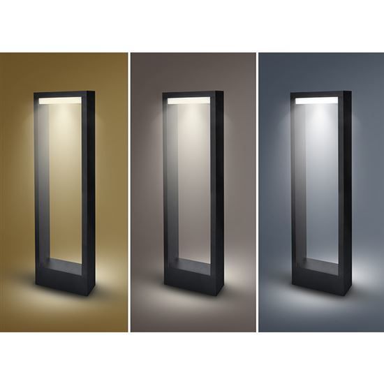 Stĺpiková verzia svietidla Ragusa LED prináša rovnaké vlastnosti ako nástenná verzia, ale vo formáte ideálnom na umiestnenie pozdĺž ciest, v záhradách, na terasách alebo príjazdových cestách. Svietidlo ponúka možnosť výberu chromatickosti (3000K / 4000K / 6000K) prostredníctvom integrovaného prepínača a poskytuje svetelný tok 450 lm s rovnomerným rozptylom vďaka uhlu 120°.
