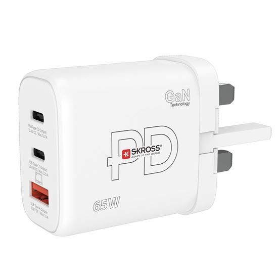 SKROSS USB A+C nabíjací adaptér Power Charger 65W GaN UK, Power Delivery, typ G