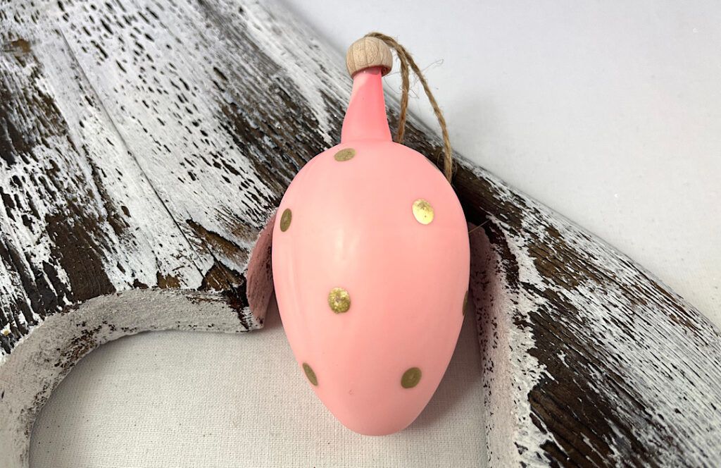Sklenené vajíčko v ružovej farbe so zlatými bodkami.