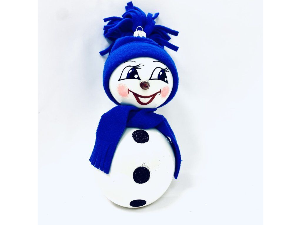 Tento ručne maľovaný sklenený snehuliak prinesie do vášho domova kúzelnú zimnú atmosféru. S výškou 18 cm je perfektná pre vianočné dekorácie aj zimnú výzdobu. Snehuliak má priateľský úsmev, ružové tváričky a roztomilé modré oči, ktoré každého potešia. Jeho čiapka so strapcami a ladiaci šál sú v elegantnej tmavo modrej farbe, čo vytvára moderný a štýlový vzhľad.