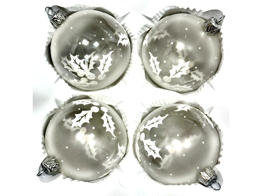 IRISA Sklenené vianočné gule 7 cm – Zimná cesmínová elegancia ( Sada 4 )