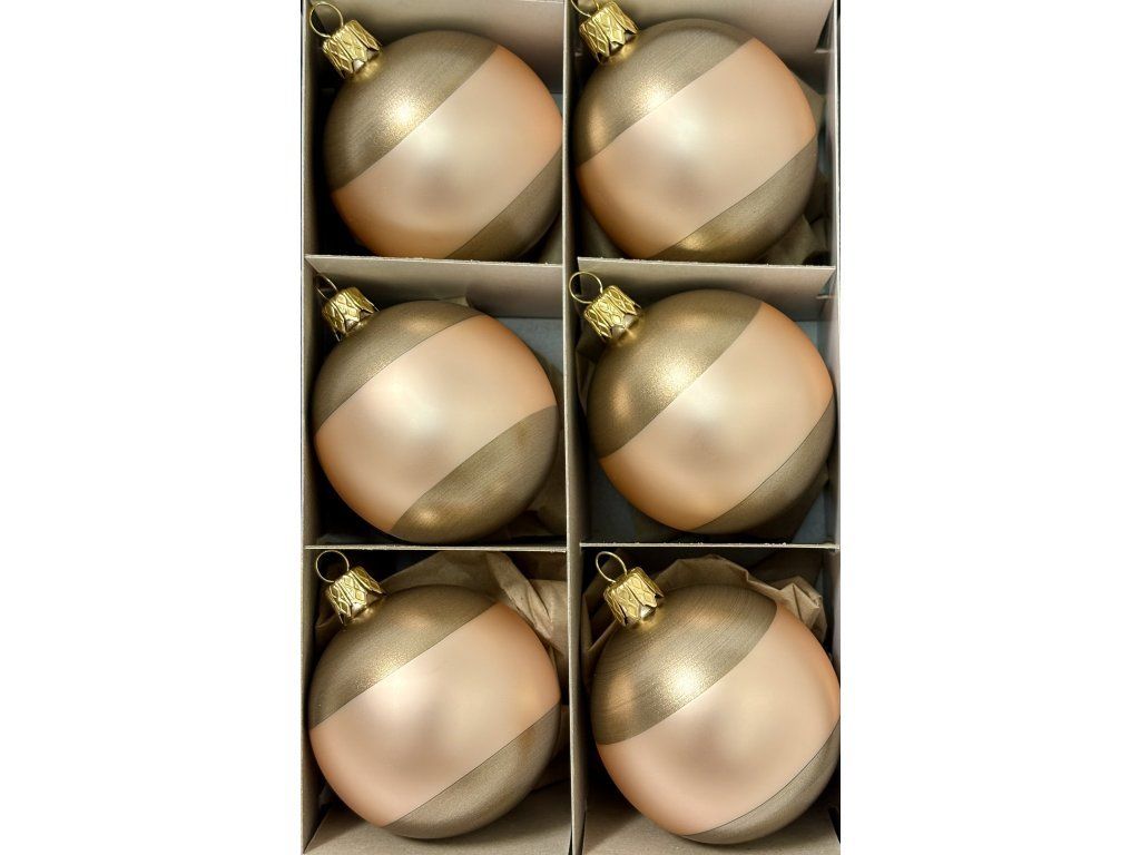 Elegantné sklenené gule 6 cm – zlatohnedé s medeným pruhom