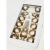 Luxusná sada vianočných ozdôb v jedinečnom bronzovo-zlatom prevedení je stvorená na slávnostnú atmosféru Vianoc. Obsahuje celkom 13 ks ručne fúkaných a maľovaných sklenených ozdôb – okrúhle gule s priemerom 7 cm, ladné zvončeky, kvapkovité tvary a dominantnú špicu s výškou 28 cm. Každý kúsok je precízne spracovaný tradičnou českou sklárskou technikou, ktorá sa dedí z generácie na generáciu. Táto kombinácia modernej matnej bronzovej a trblietavej zlatej pôsobí elegantne a pritom vkusne, takže sa hodí ako do klasických interiérov, tak do moderného štýlu. Vaša vianočný stromček sa premení na naozajstný šperk, ktorý rozžiari celú domácnosť.