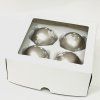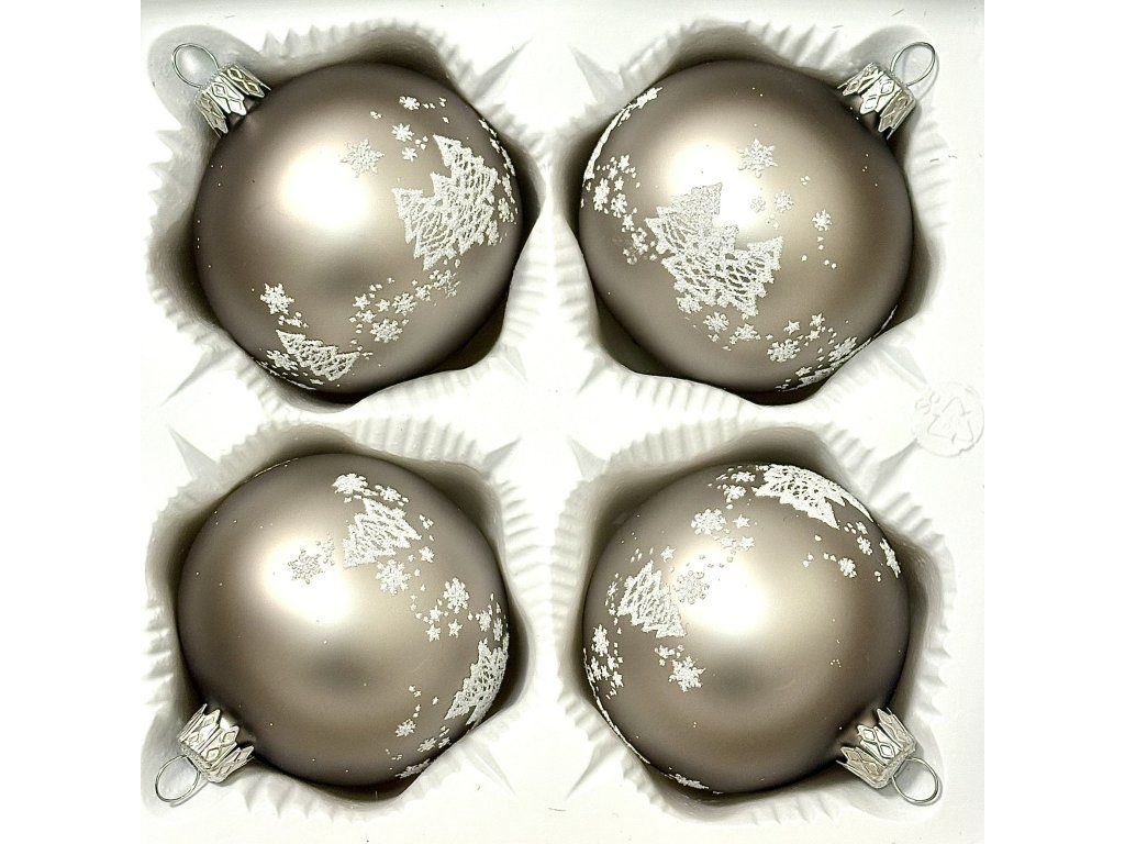 Šedé sklenené vianočné gule so stromčekom a vločkami – sada 4 ks (7 cm)