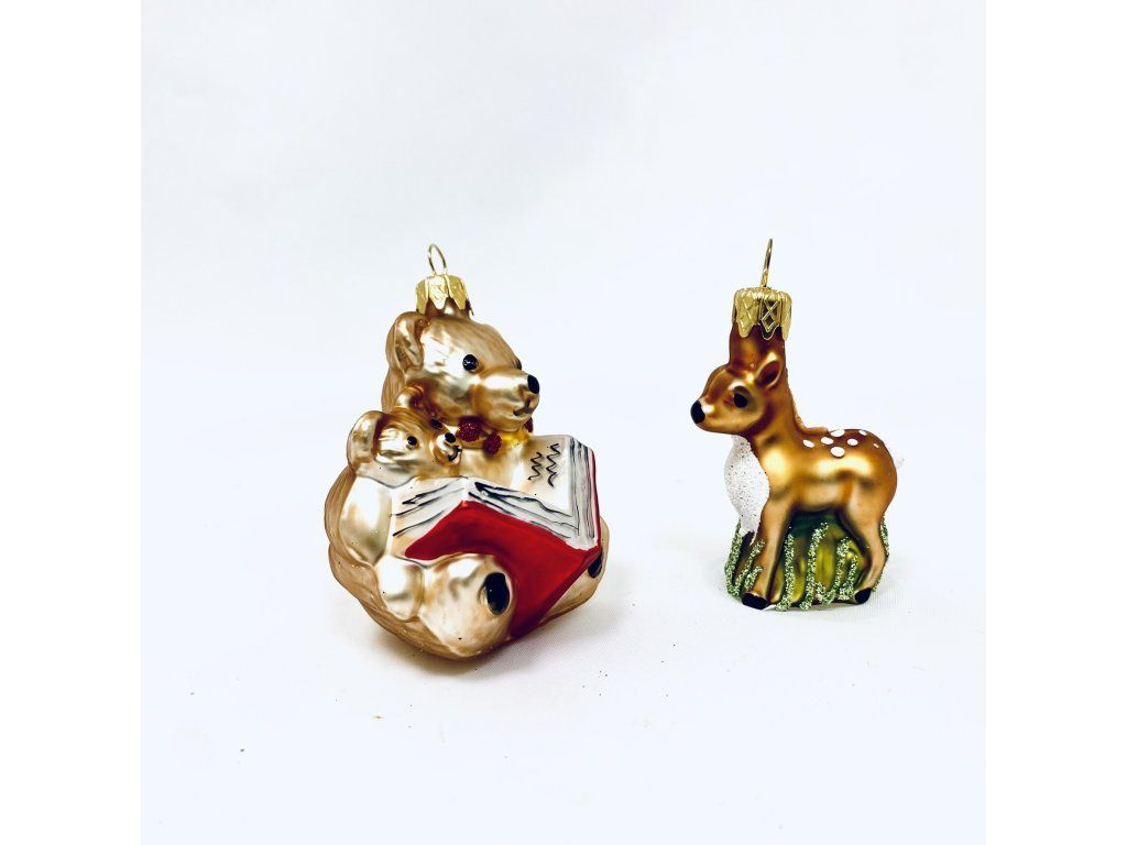 Medvedík s nežnosťou rozpráva príbeh, zatiaľ čo jeleň, so svojimi jemnými bielymi bodkami a hnedým telom, vnáša do vášho domova atmosféru prírody a vianočné mágie. Tento set je ideálnym doplnkom pre každého, kto chce ozdobiť svoj domov s láskou k príbehom a kúzelným lesným bytostiam.