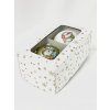 Súprava dvoch vianočných gulí so snehuliakmi – biela & zeleno-zlatá – 8 cm – 2 ks (s darčekovou krabičkou) IRISA