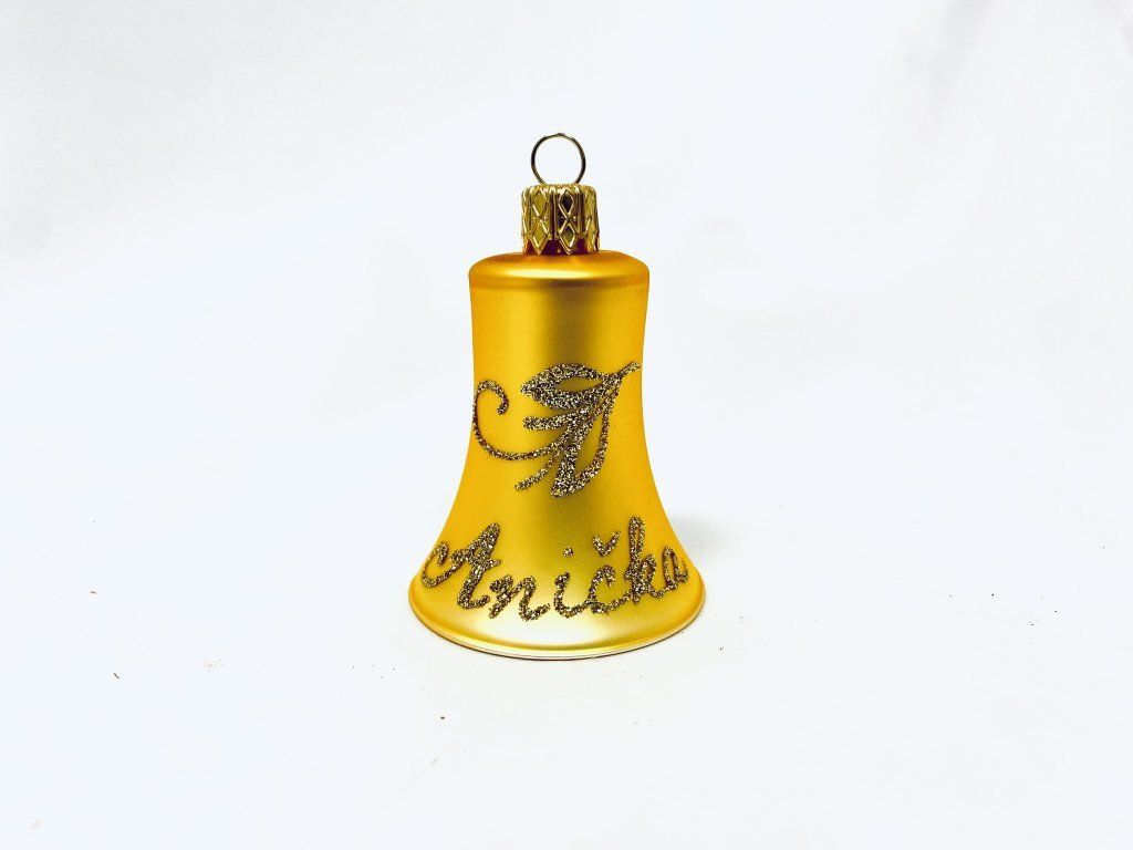 Vianočný sklenený zvonček s menom - Osobná ozdoba s kúzlom (zlatá, 1 ks, 7 cm)
