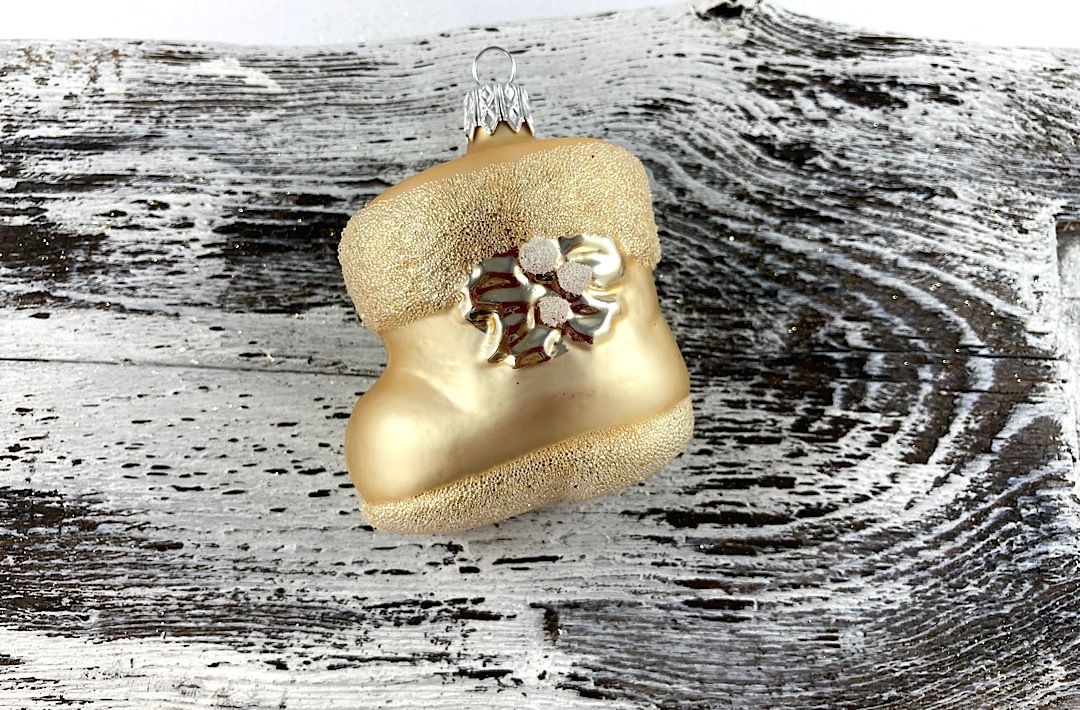 Sklenená čižmička v zlatej farbe ladená do kolekcie Luxury Elegance.