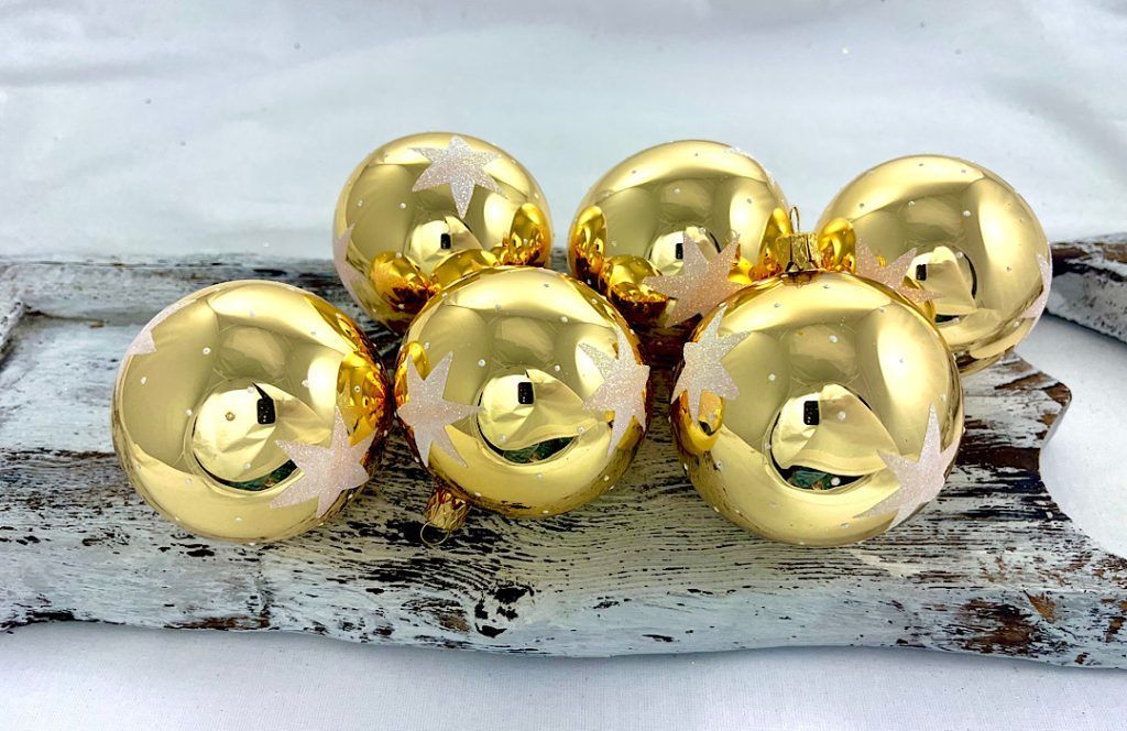 Vianočné gule 22/4552/7/6ks – zlaté + biele hviezdy