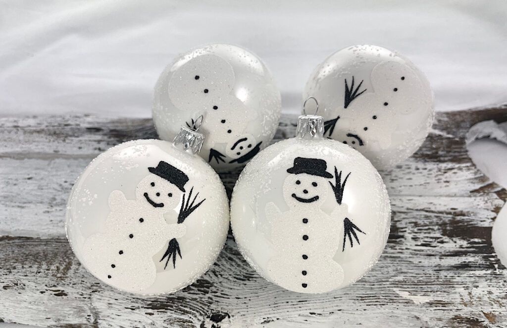 Sklenené guličky vo farbe biely porcelán s maľbou snehuliaka s metlou. Guličky sme vyrobili podľa starej predlohy . Nájdete ich v ponuke aj vo farebnej verzii.