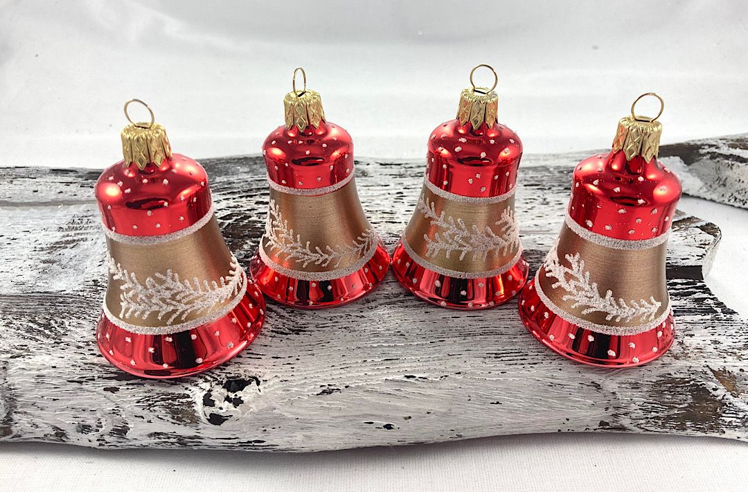 Vianočné zvončeky 52/293/5,5/4ks – červené s bronzovým pásikom – retro