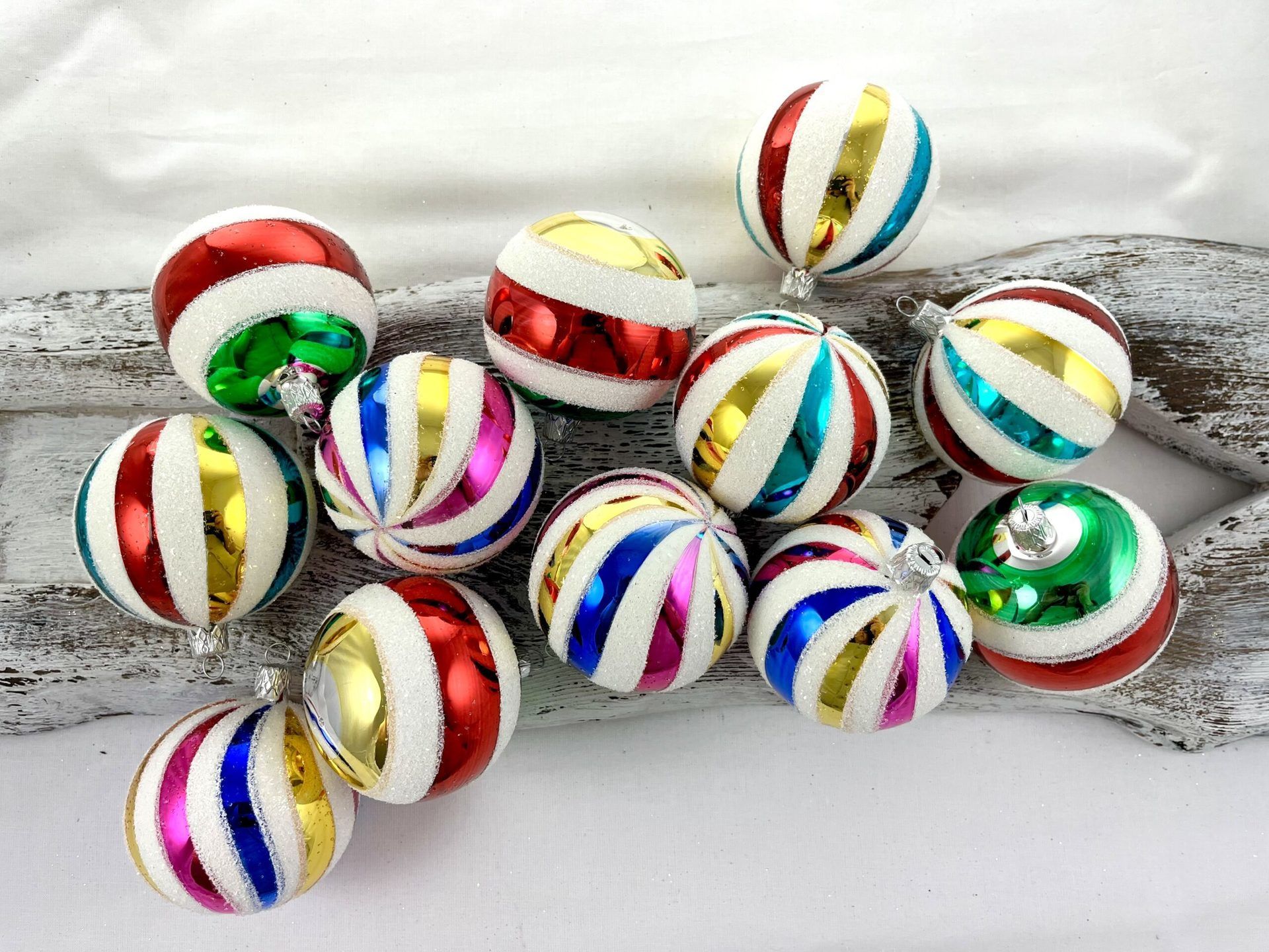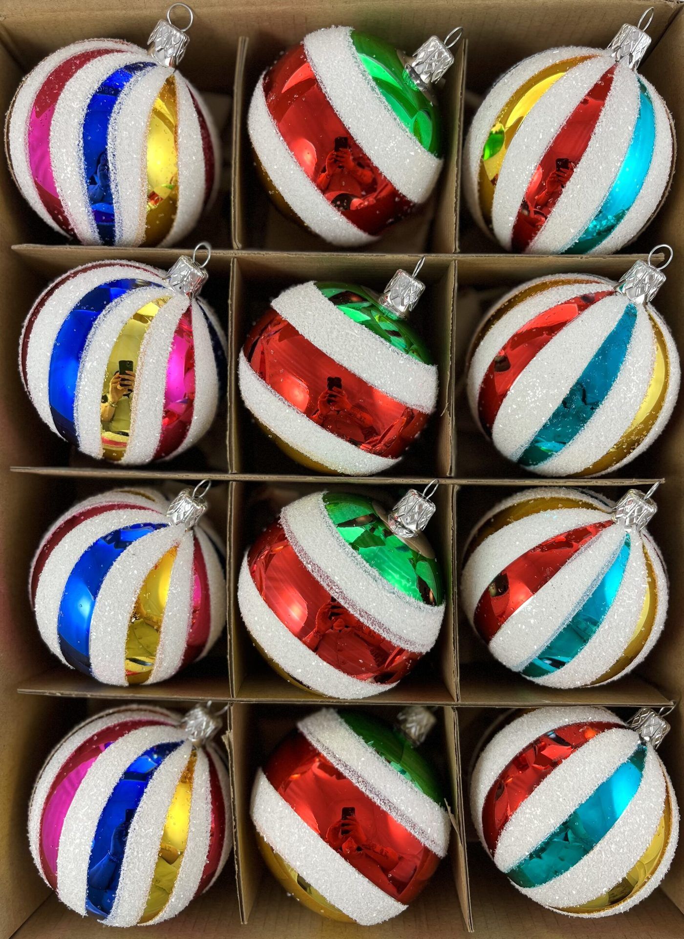 Krásny sklenený žiarivý set plný spomienok na detstvo . V sete sa nachádzajú tri druhy po štyri kusy .