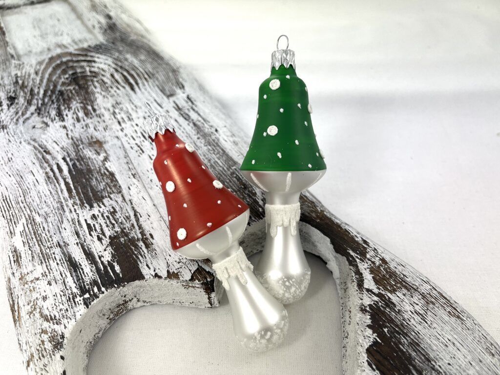 Sklenené novinka v podobe muchotrávky červenej s bodkami . V ponuke nájdete aj muchotrávku zelenú .