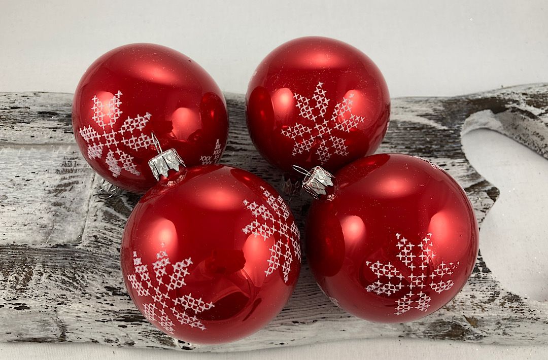 Sklenené guličky červenej farby s krížikovým vzorom vločky .