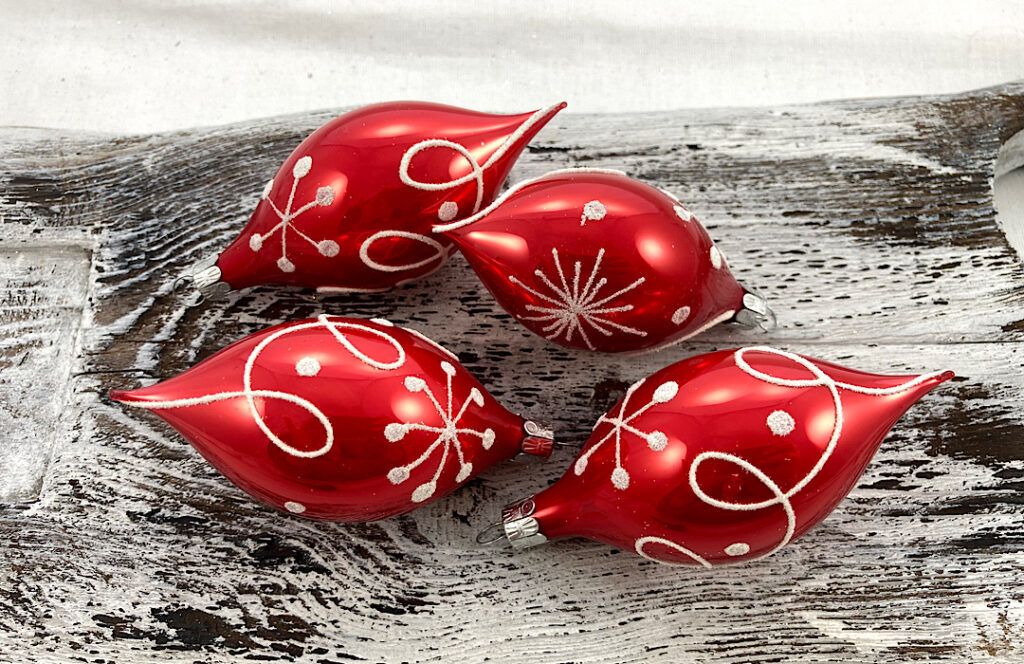 Vianočné olivy 36/085/8×4/4 – červené, špirálky,vločky