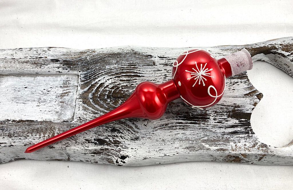 Vianočný špic 661/199/7/1ks – červený so špirálkami a vločkami